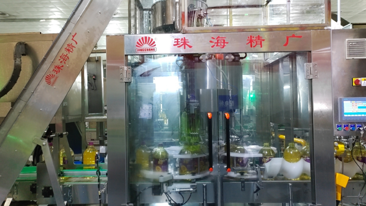 每小時4500瓶的食用油灌裝機(jī)設(shè)備實拍